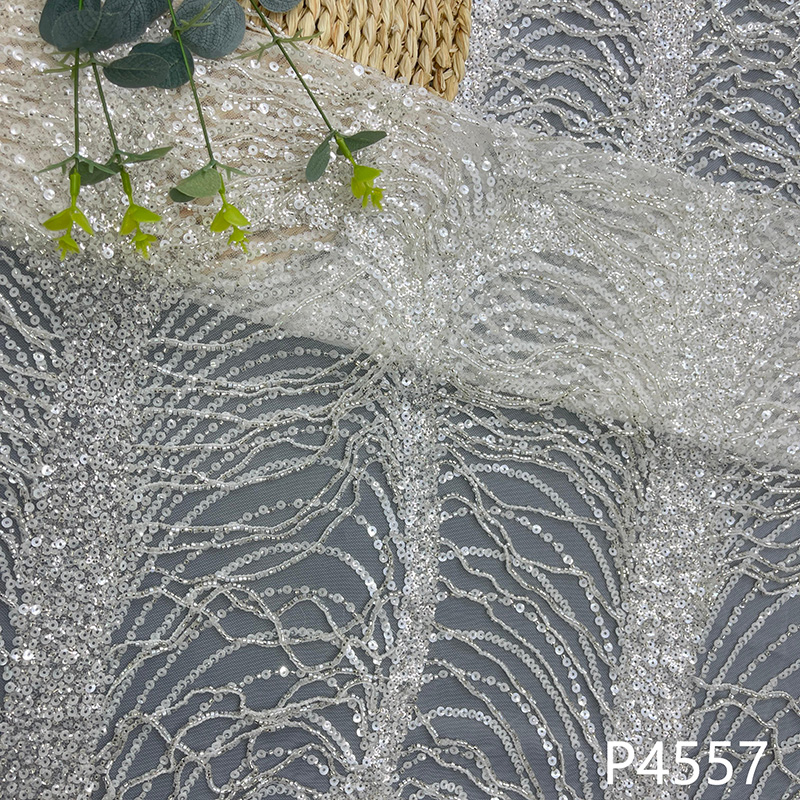 Fringe Bridal Lace Fabric with Sequins