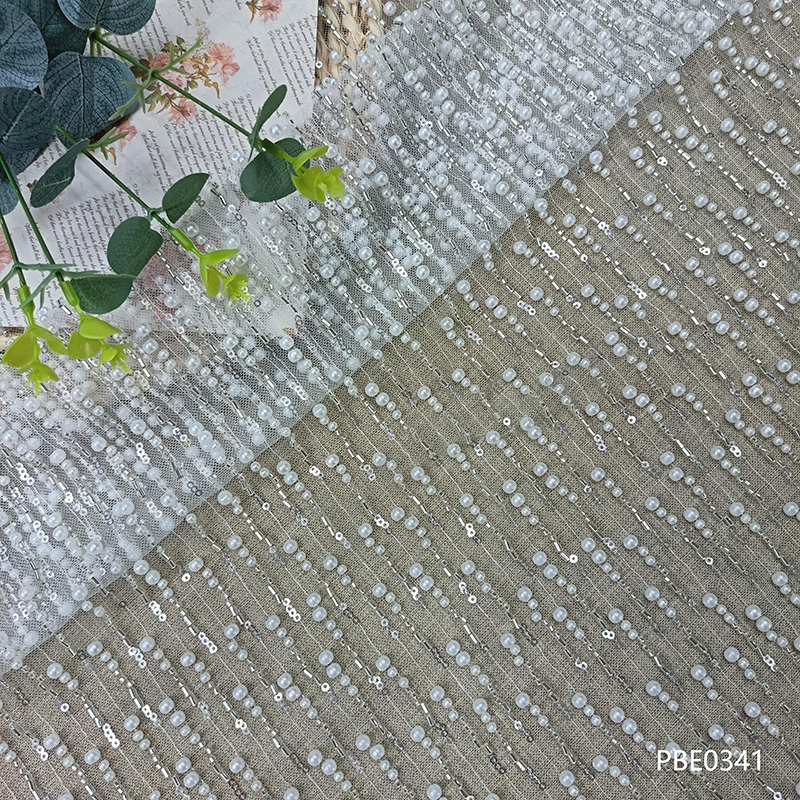 Beaded Mesh Fabric for Wedding Dress or Party Dress