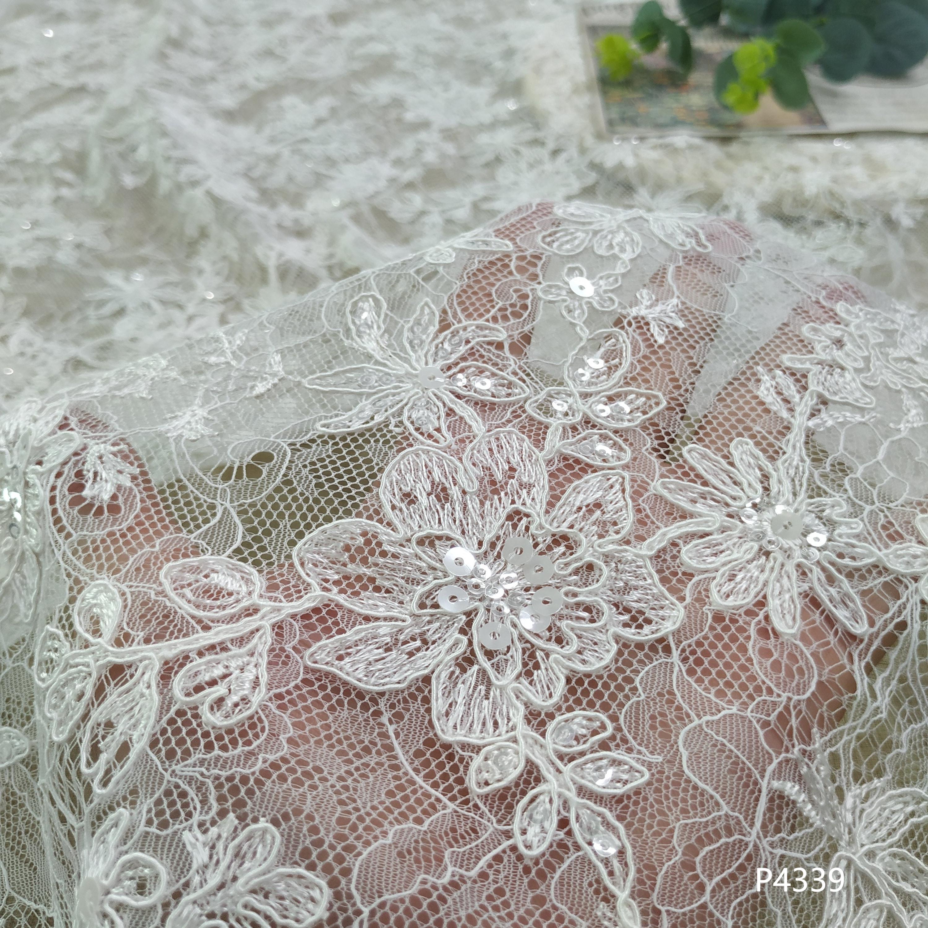 Popular Breathable Soft Sequin Lace Embroidered Fabric for Wedding Dresses