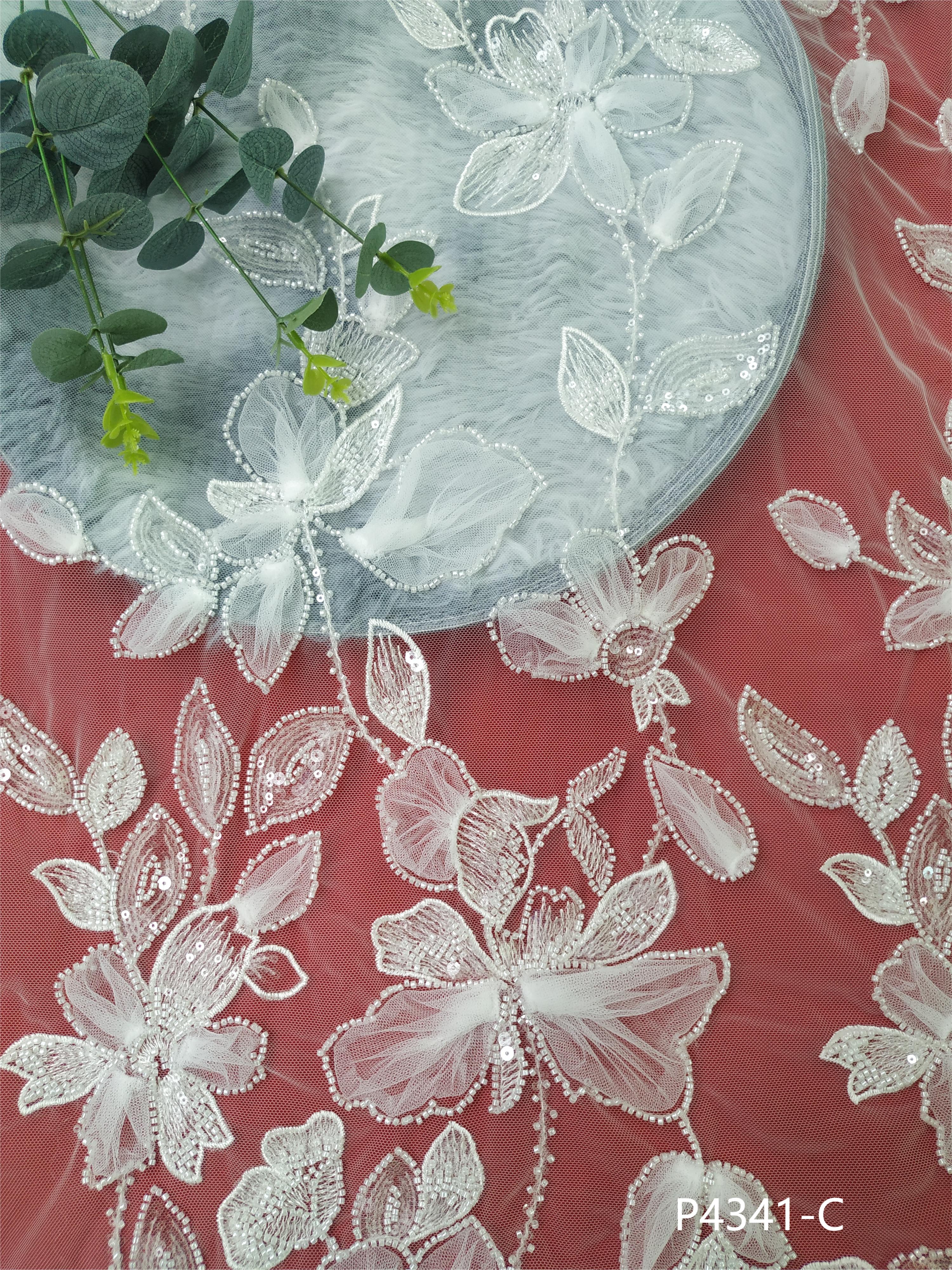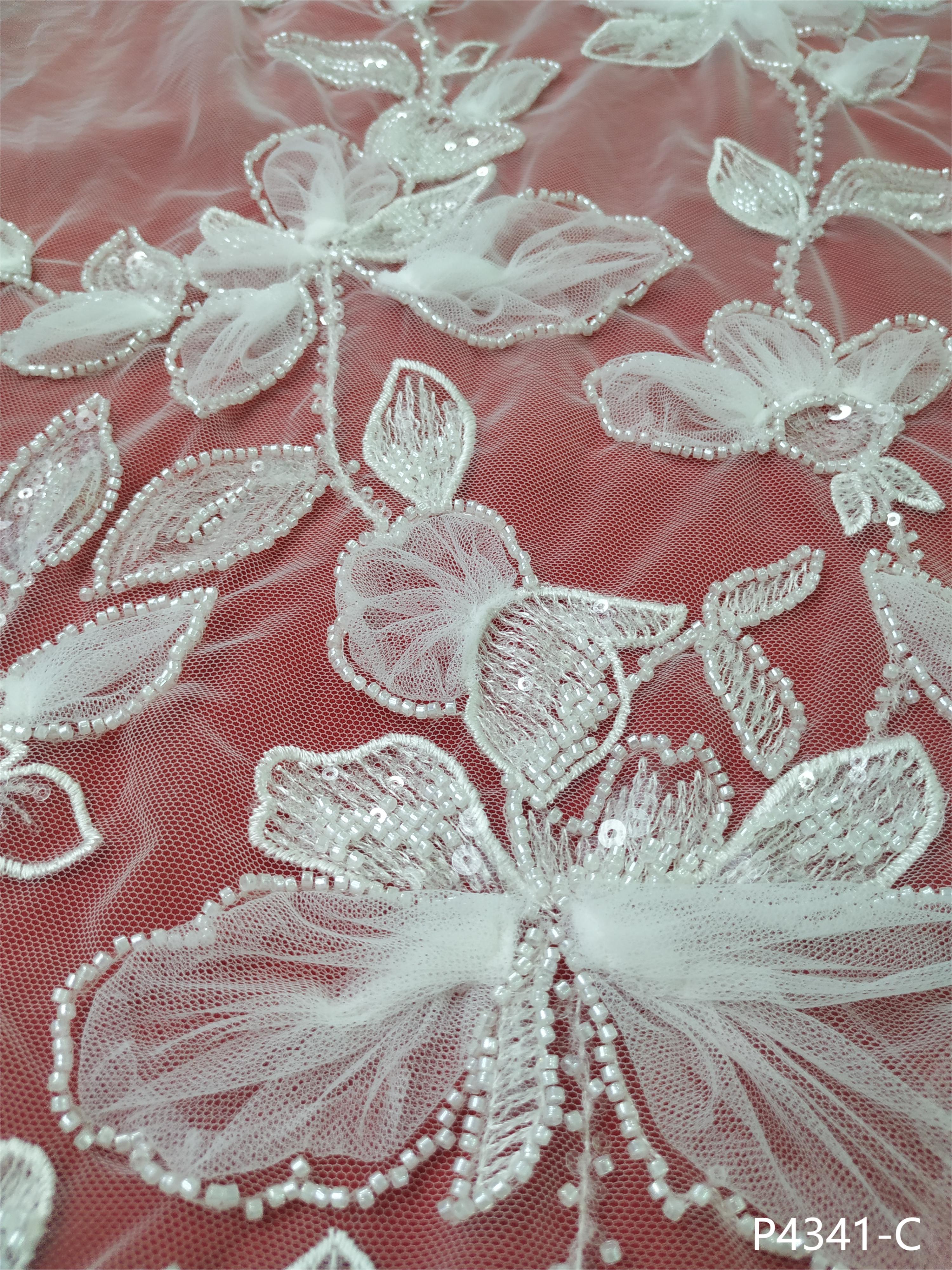 New Style Customized Beautiful Sequin Floral Lace Tulle Embroidered Bead Mesh Fabric
