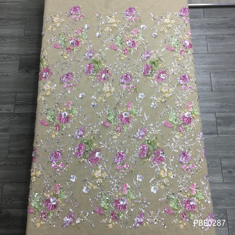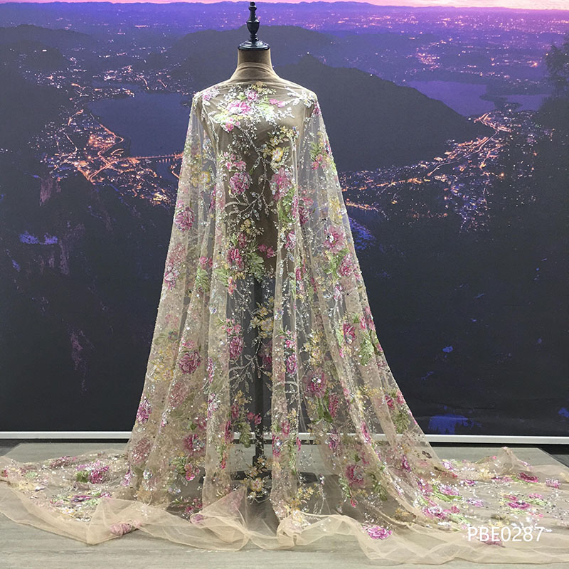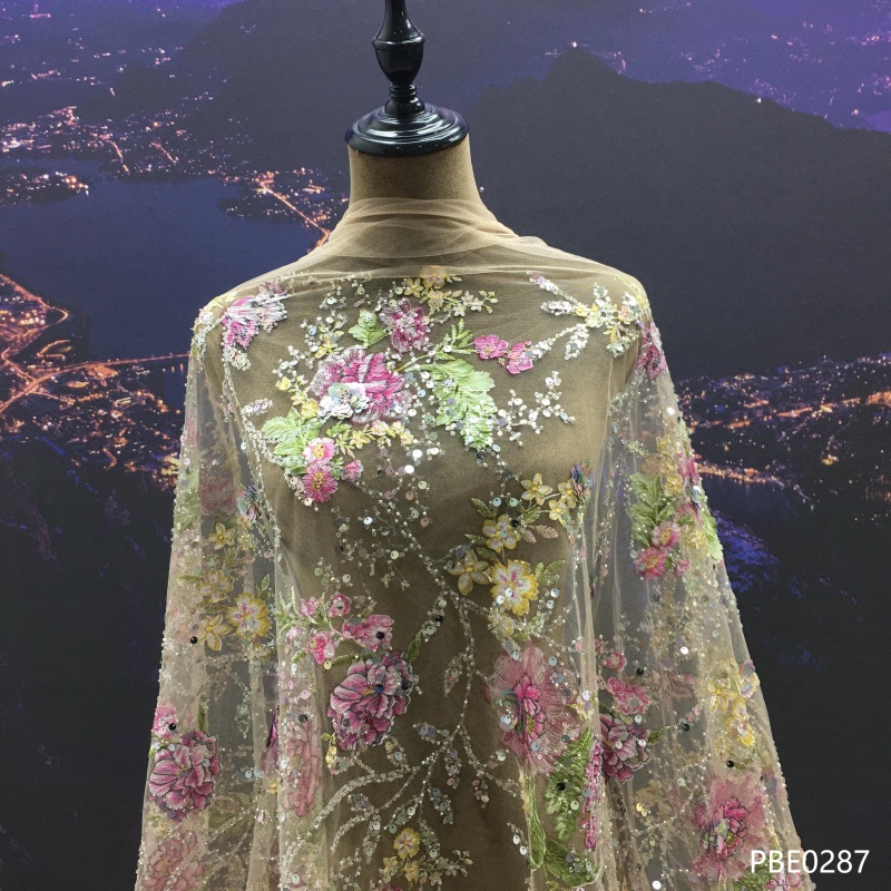 Wedding Dress Fabric Embroidery Beaded Geometry Shape