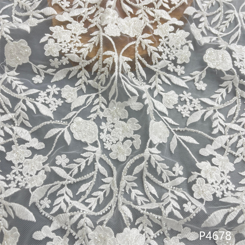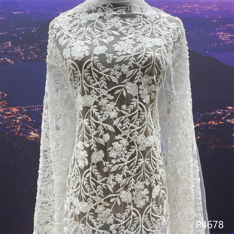 Wedding Dress Fabric Embroidery Beaded Geometry Shape