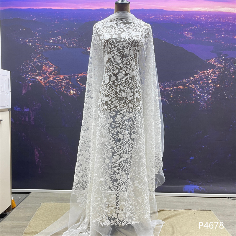 奢华婚礼白色新娘薄纱蕾丝高端刺绣女士面料