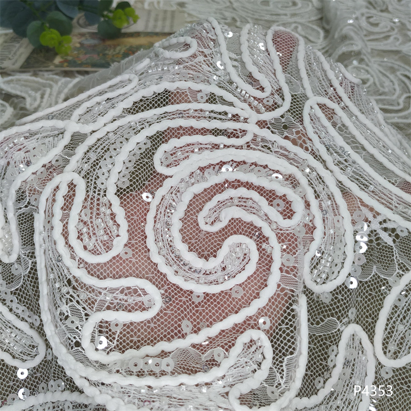刺绣面料独特薄纱精美厚重手工串珠网状蕾丝面料