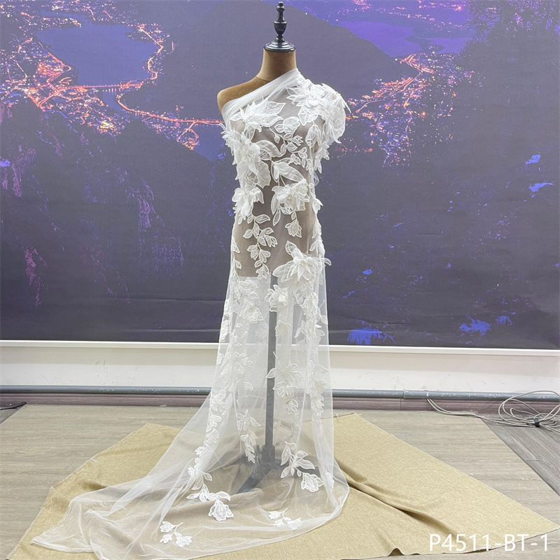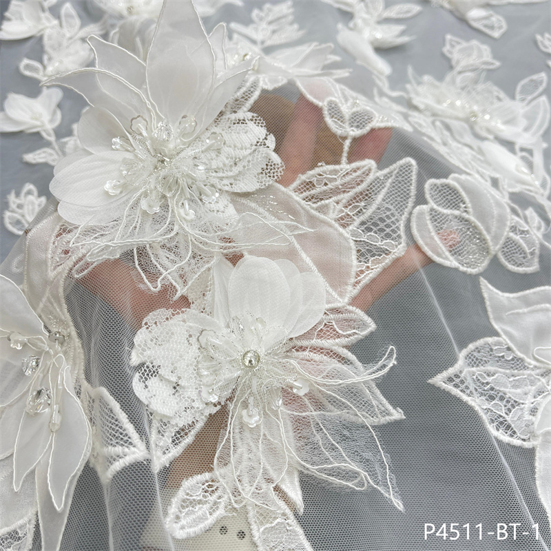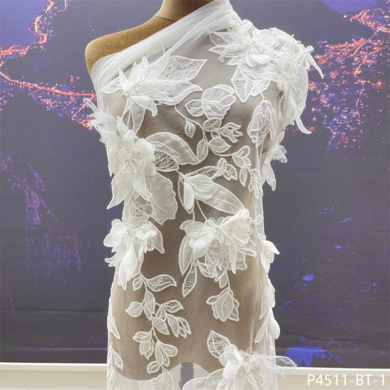 新款激光切割工艺手工3D立体花朵婚纱面料