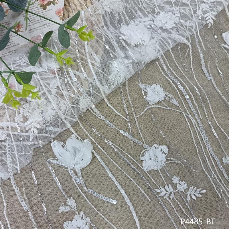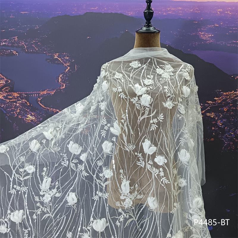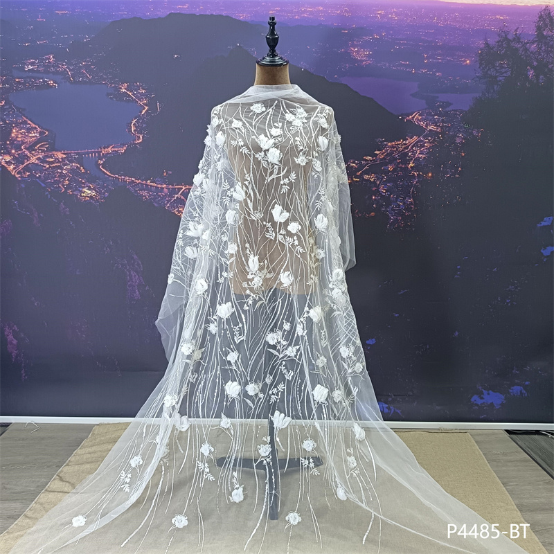 新款激光切割工艺手工3D立体花朵婚纱面料