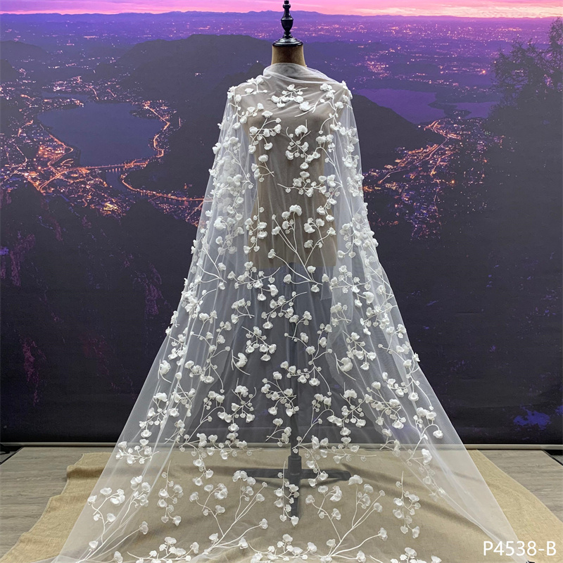 手工制作的复古婚礼3D立体花卉刺绣蕾丝面料