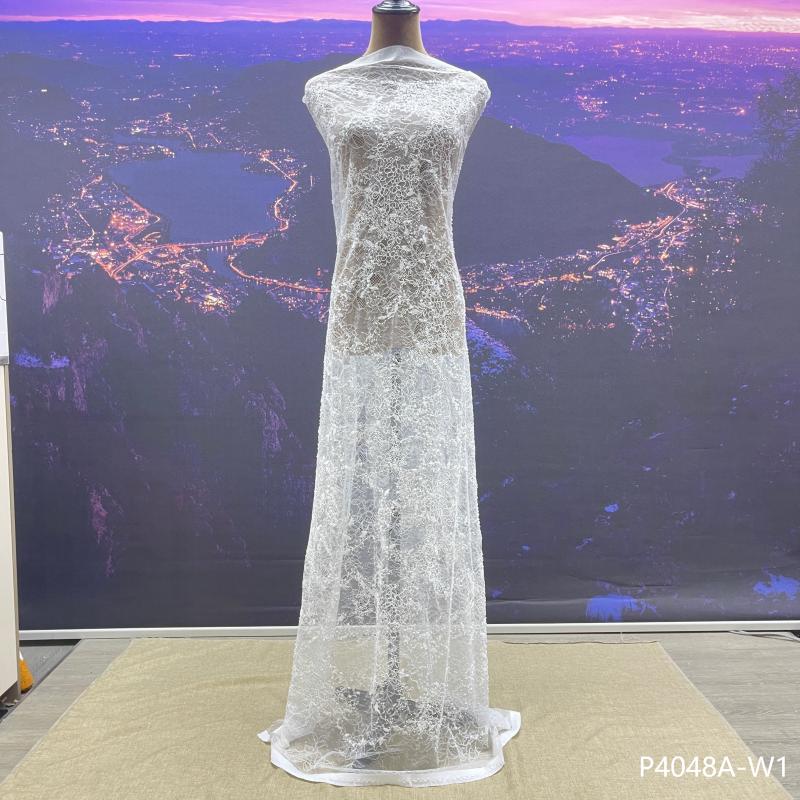 蕾丝面料 100% 涤纶薄纱蕾丝婚纱礼服面料