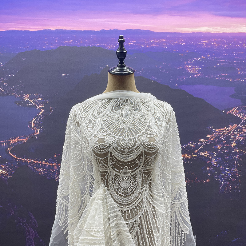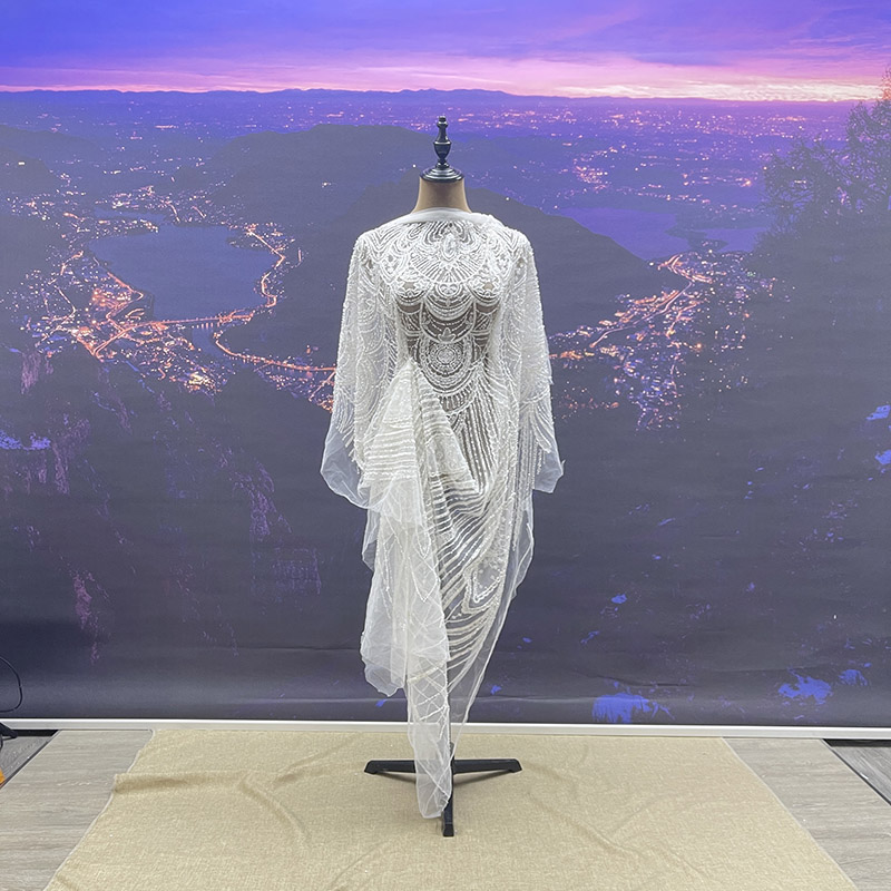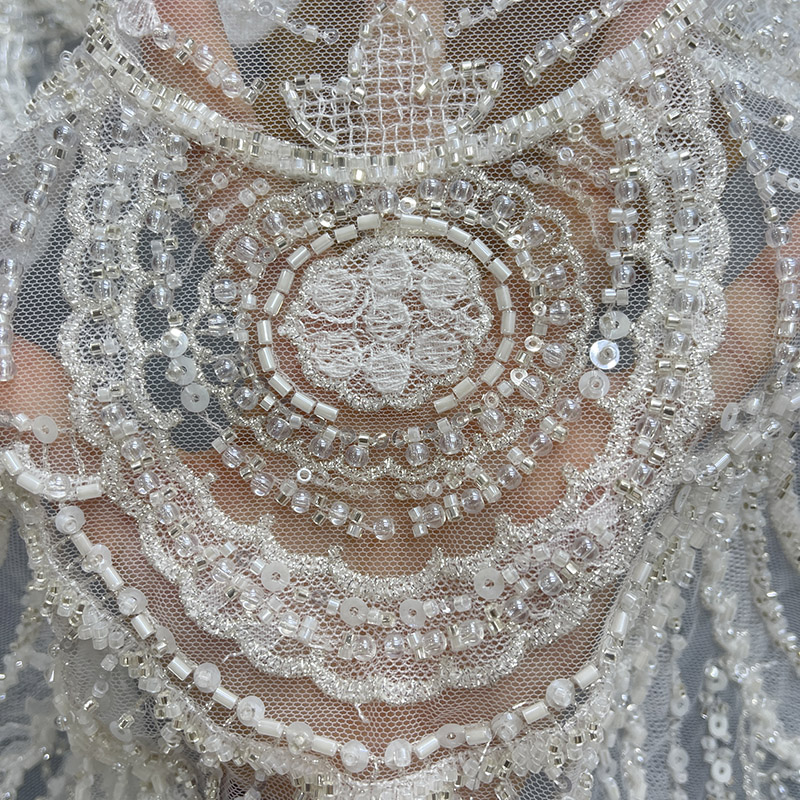 Wedding Dress Fabric Embroidery Beaded Geometry Shape