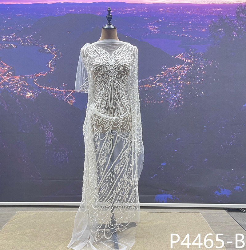 Wedding Dress Fabric Embroidery Beaded Geometry Shape
