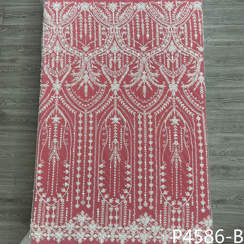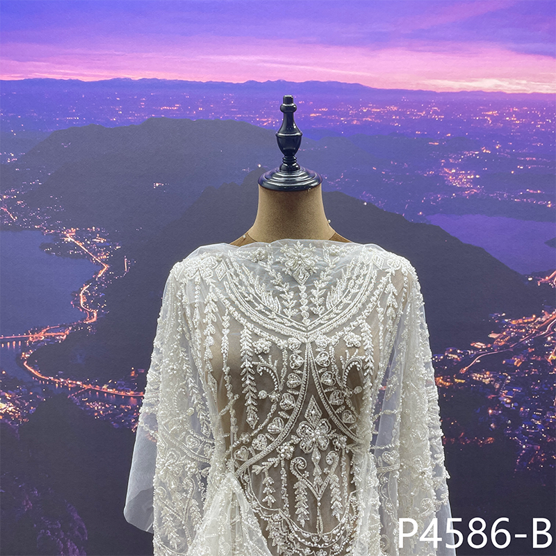 高端婚纱礼服布料手工钉珠