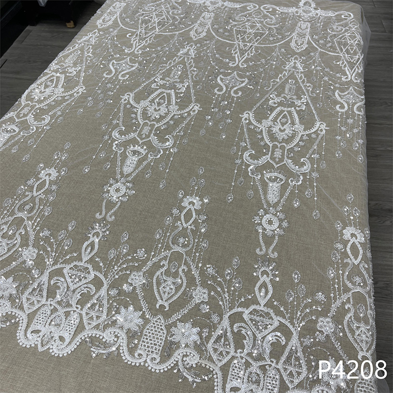 Wedding Dress Fabric Embroidery Beaded Geometry Shape