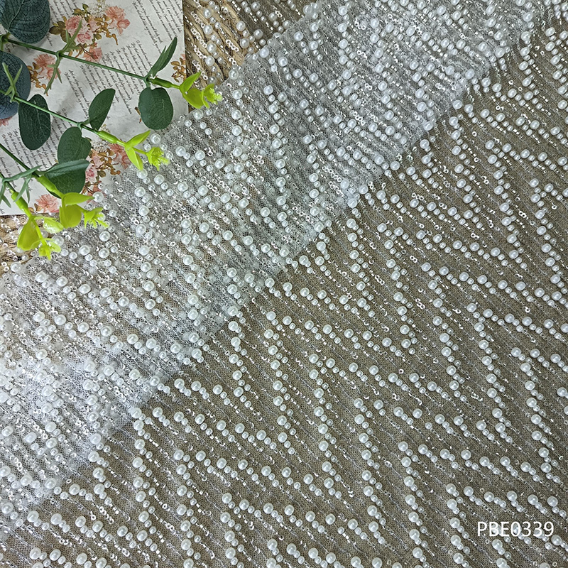 Wedding Dress Fabric Embroidery Beaded Geometry Shape