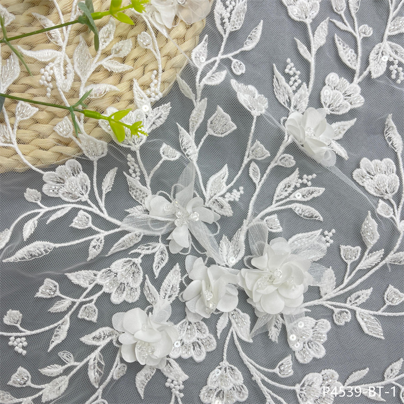 Factory Direct New Design Handmade 3D Flowers Embroidery Lace Fabric