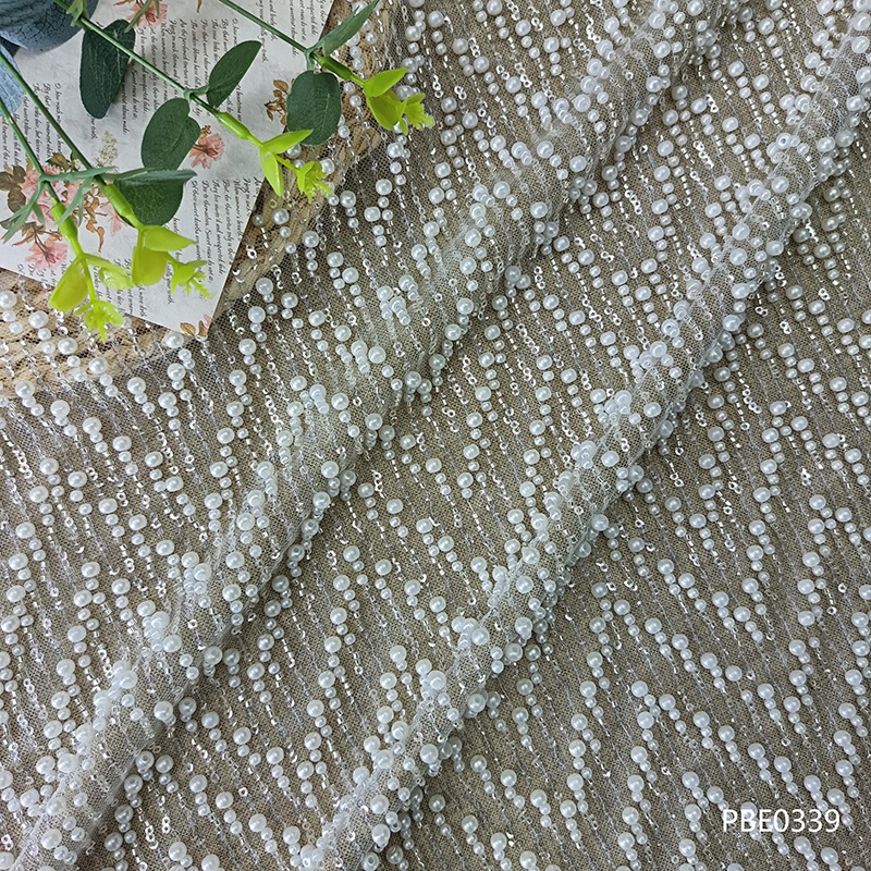 Pearl Embroidery Mesh Fabric for Bridal Lace/Fashion Cloth