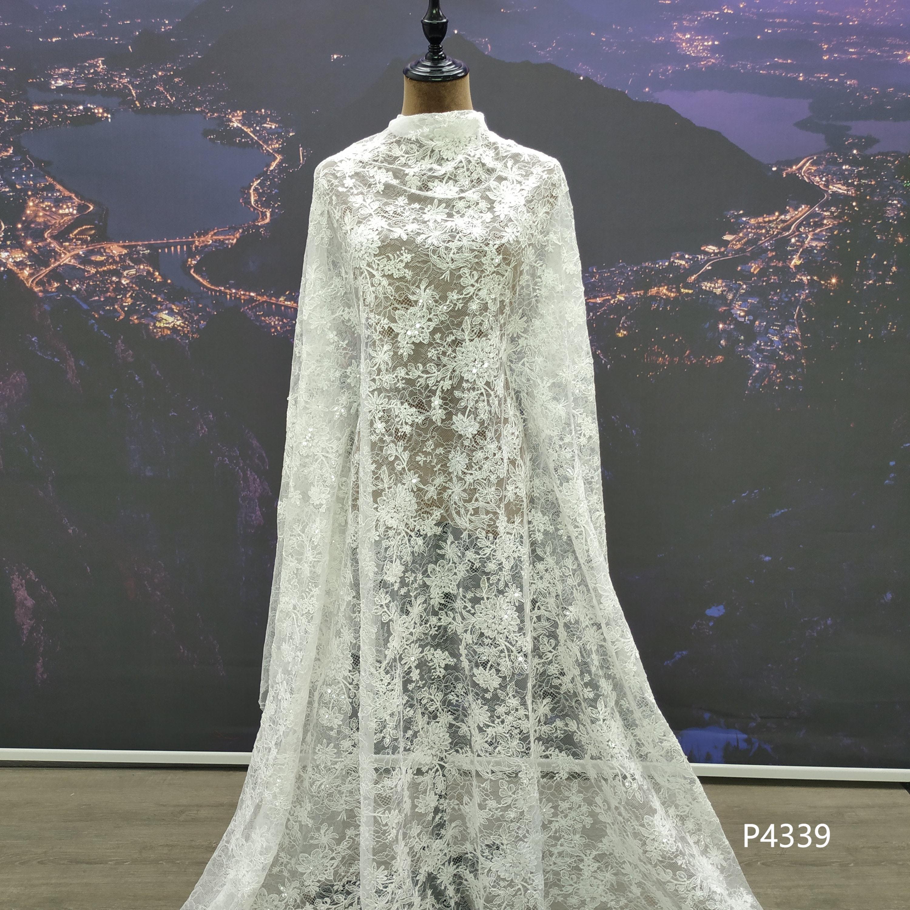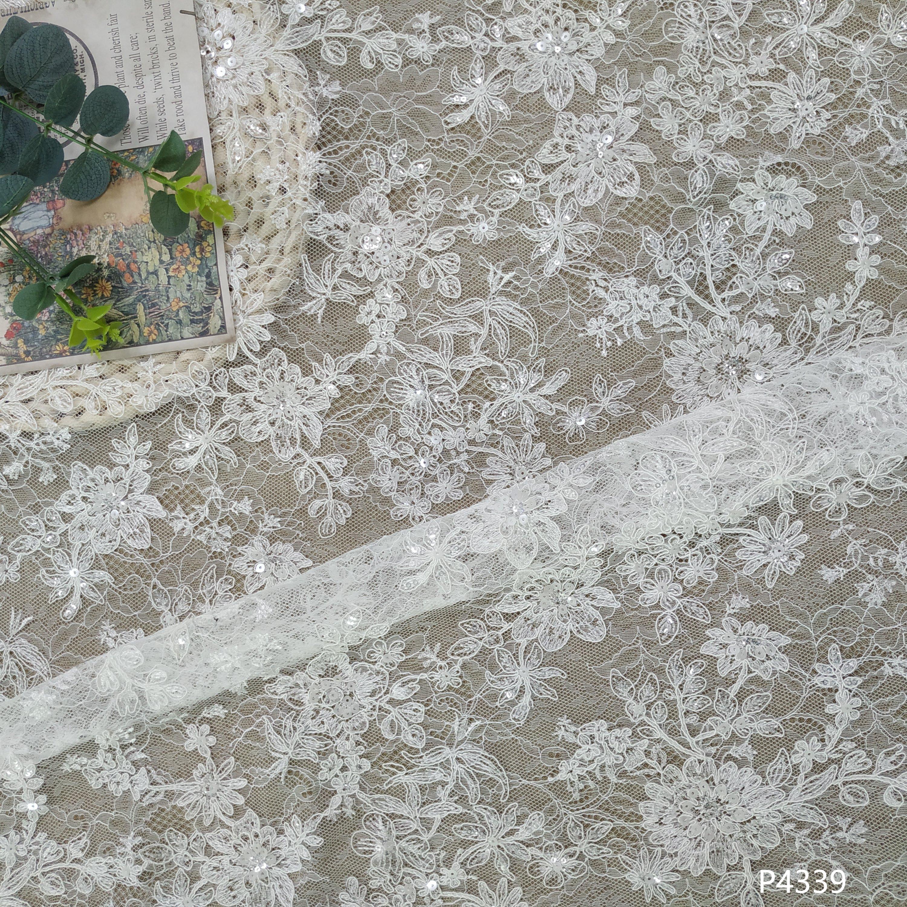 Popular Breathable Soft Sequin Lace Embroidered Fabric for Wedding Dresses