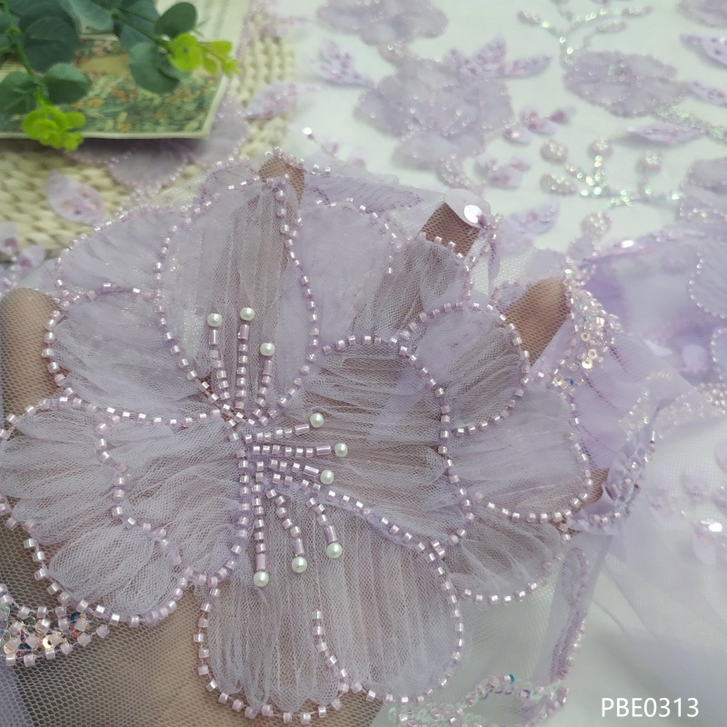 Wedding Dress Fabric Embroidery Beaded Geometry Shape
