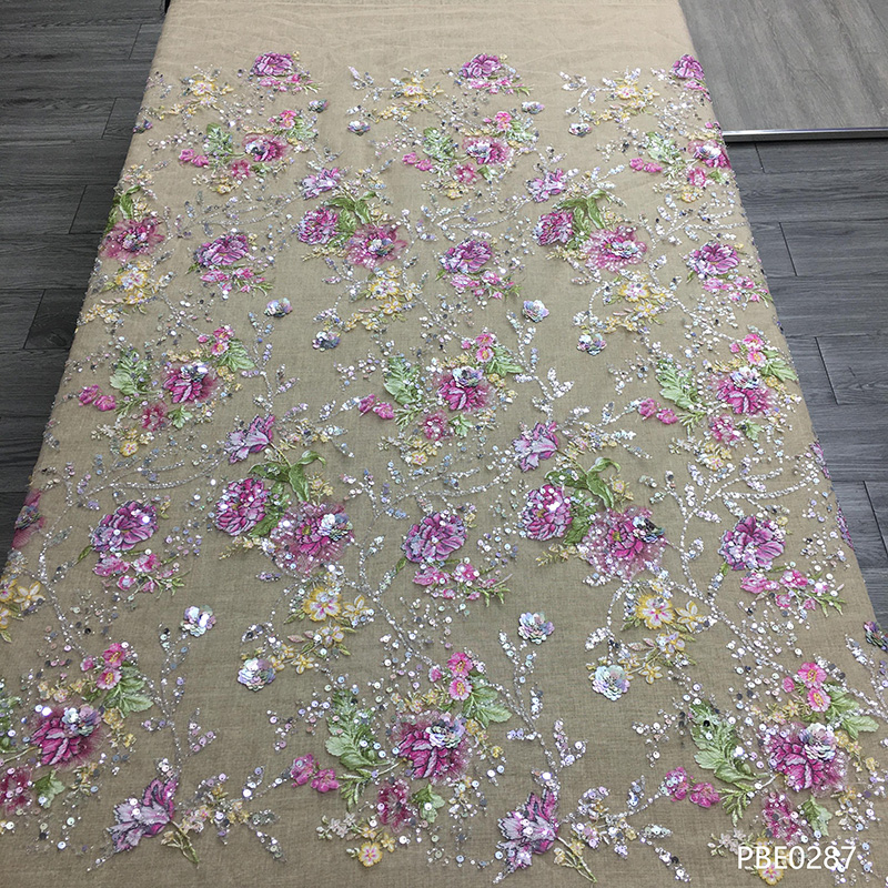 Wedding Dress Fabric Embroidery Beaded Geometry Shape