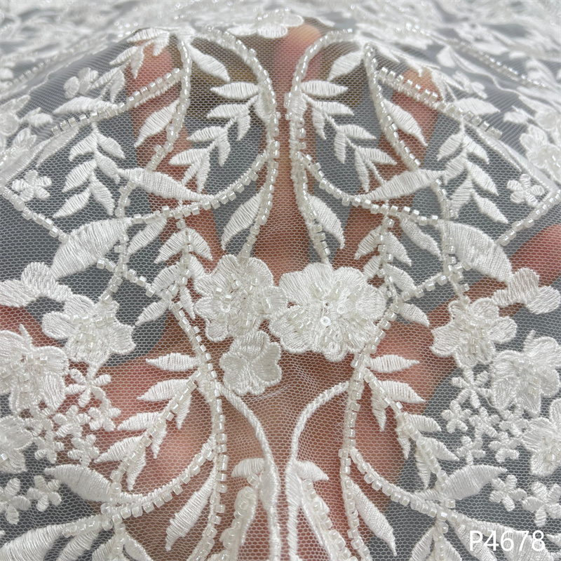 Wedding Dress Fabric Embroidery Beaded Geometry Shape