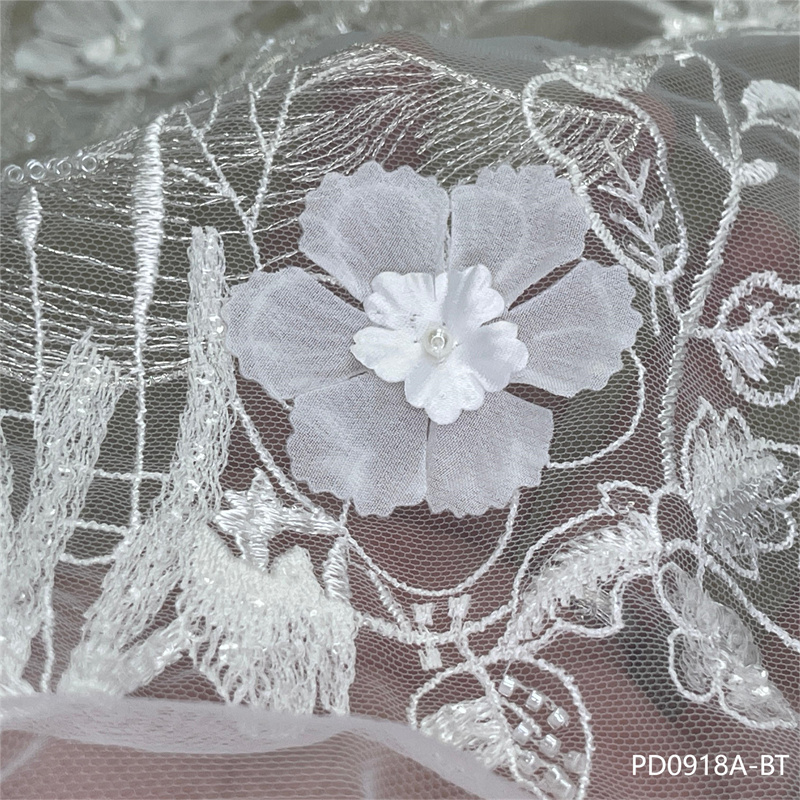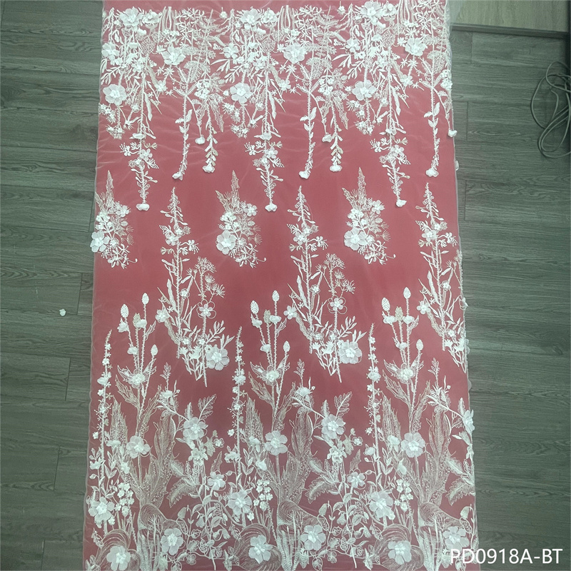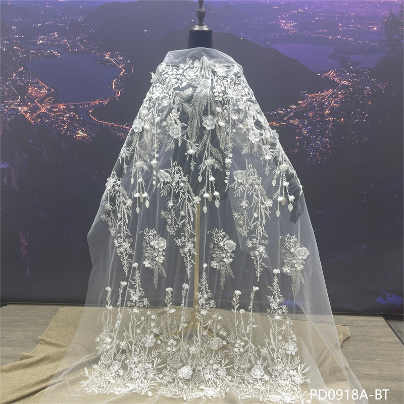 刺绣面料独特薄纱精美厚重手工串珠网状蕾丝面料