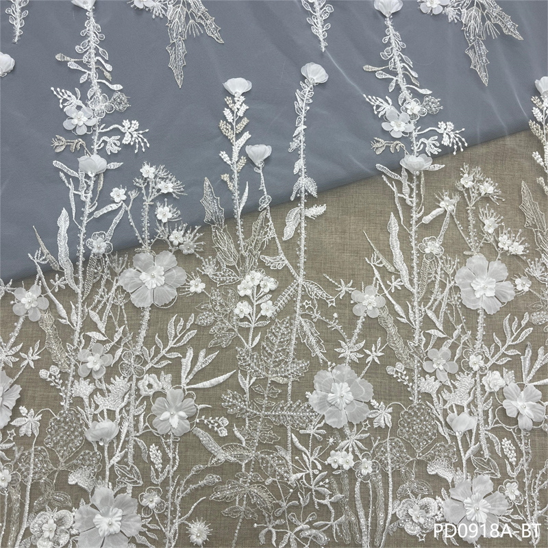 时尚法式花卉婚纱手工3D刺绣亮片蕾丝