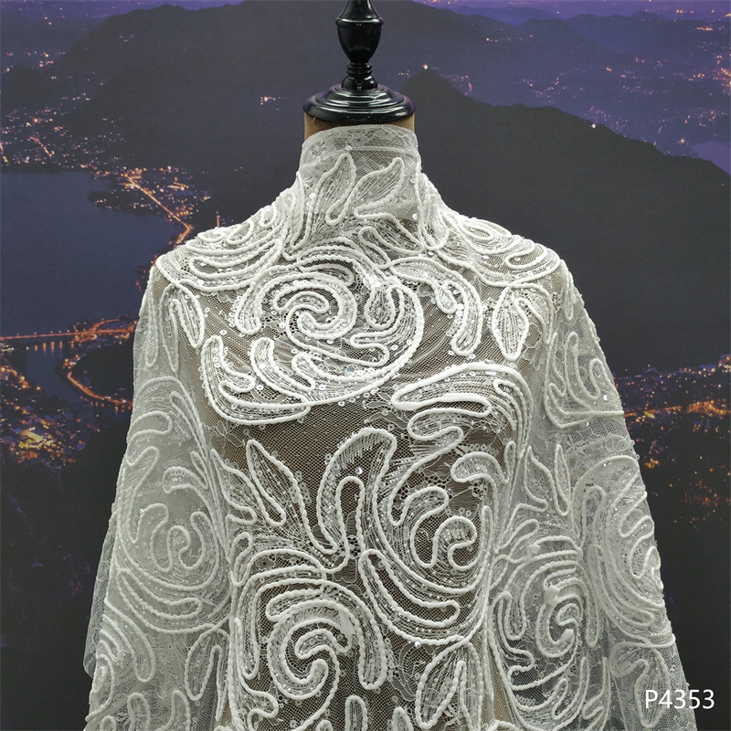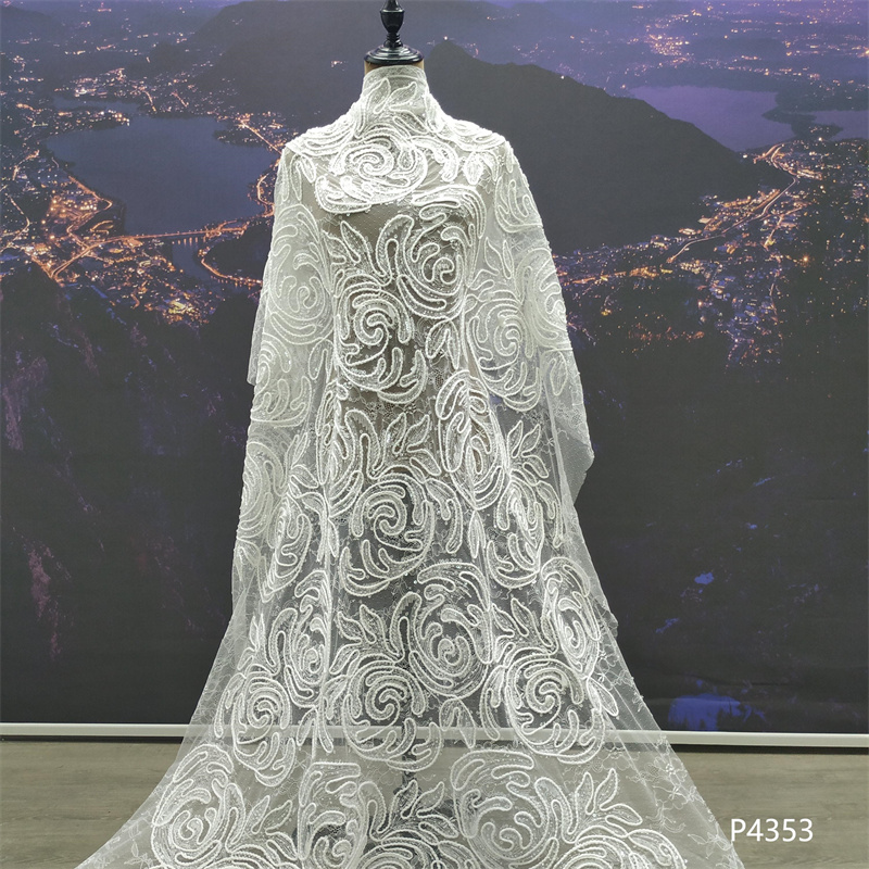 刺绣面料独特薄纱精美厚重手工串珠网状蕾丝面料