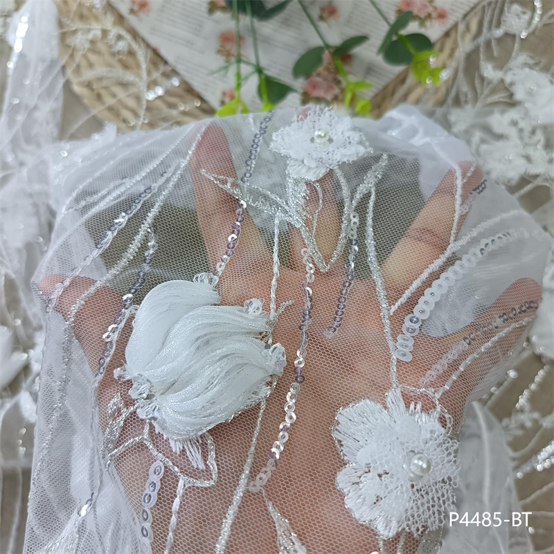 新款激光切割工艺手工3D立体花朵婚纱面料