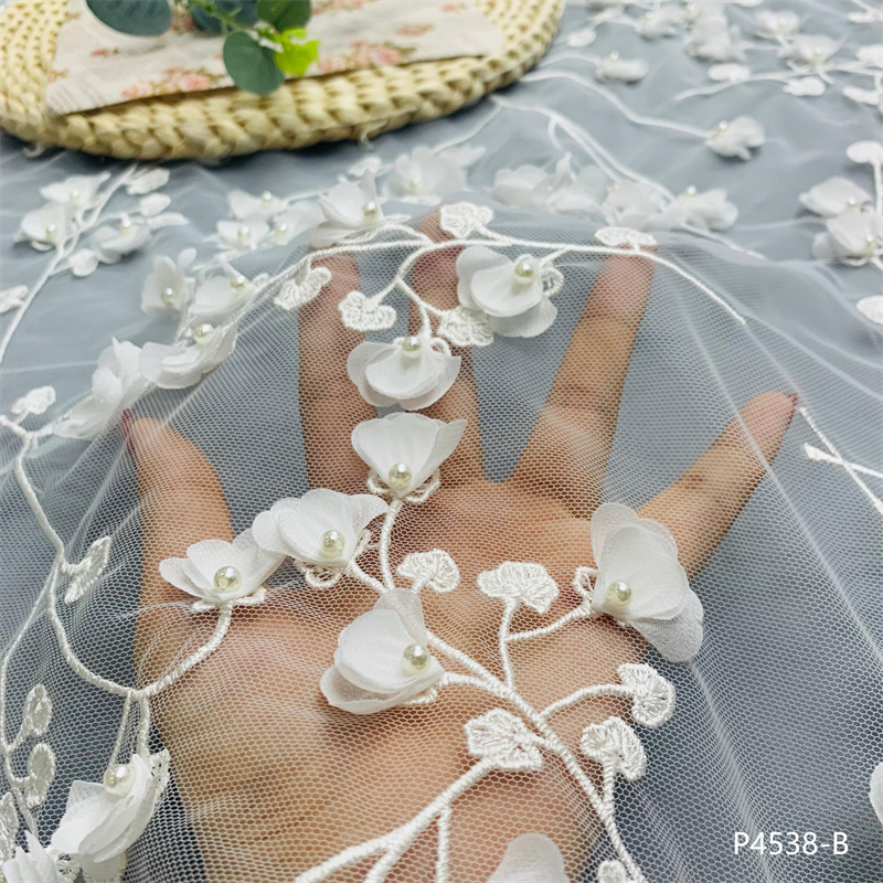 手工制作的复古婚礼3D立体花卉刺绣蕾丝面料