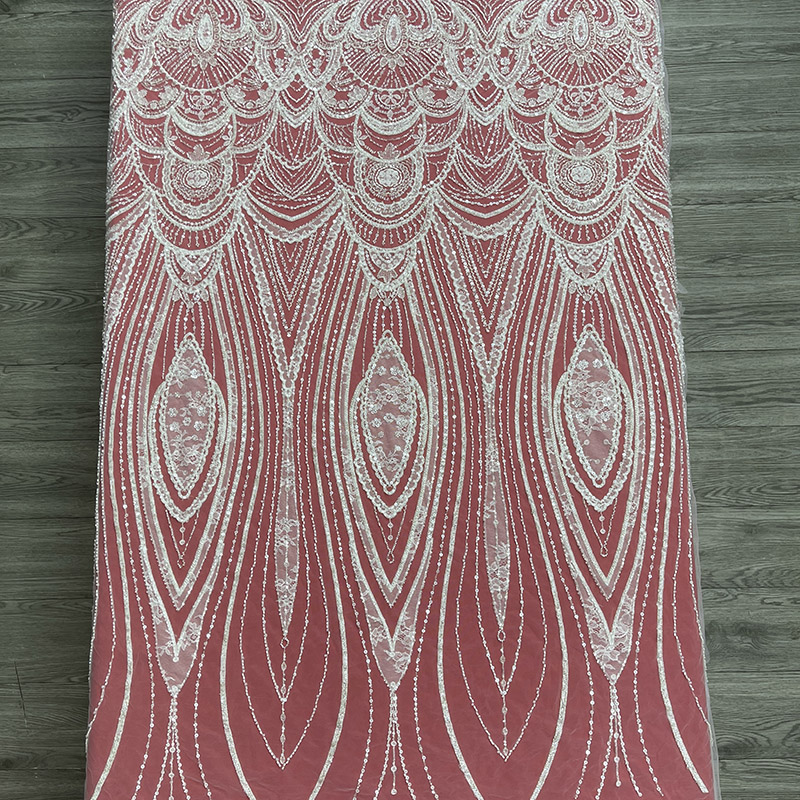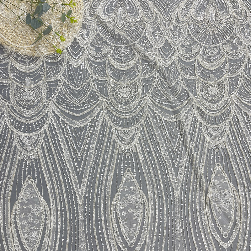 Wedding Dress Fabric Embroidery Beaded Geometry Shape