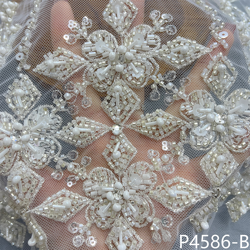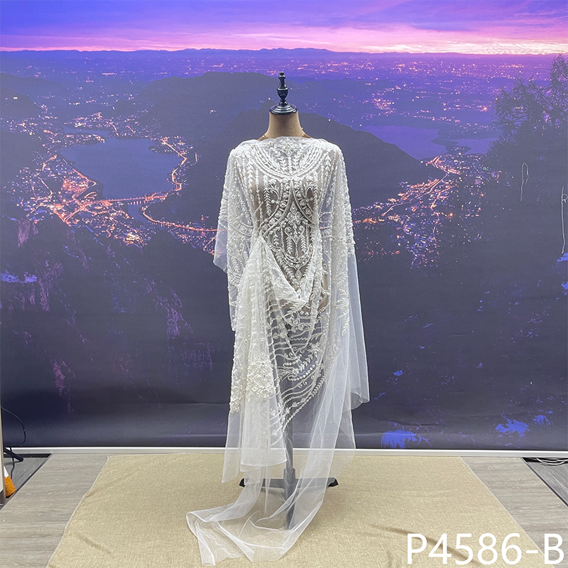 高端婚纱礼服布料手工钉珠