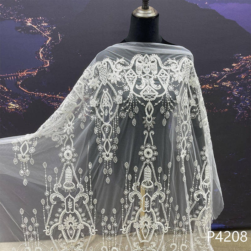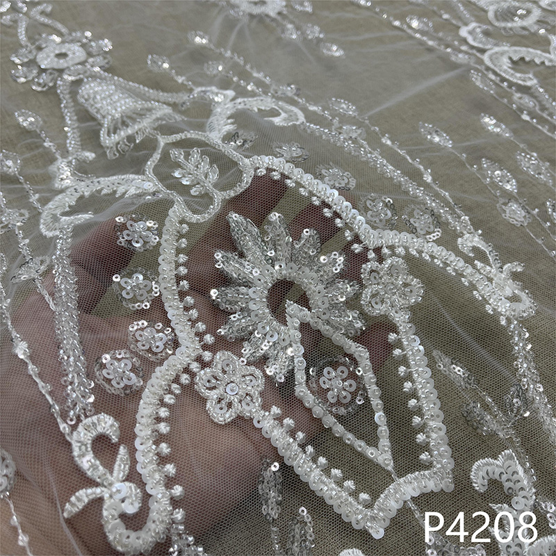 流动飘逸感珠片网纱婚纱面料