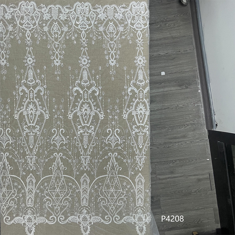 Wedding Dress Fabric Embroidery Beaded Geometry Shape