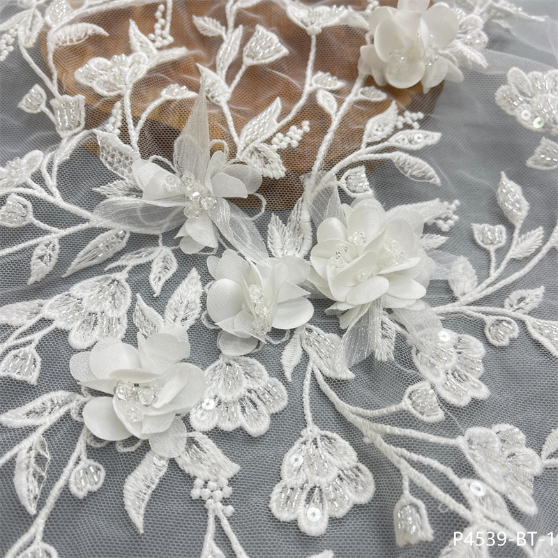 Factory Direct New Design Handmade 3D Flowers Embroidery Lace Fabric